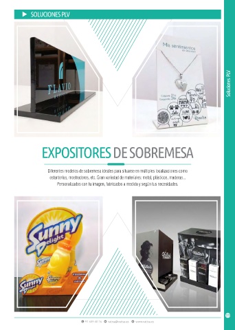 estanterías, mostradores, etc. Gran variedad de materiales: metal, plásticos, maderas...